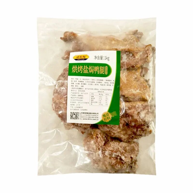 △ 盐焗鸭腿速冻熟鸭腿,单个重200g左右,每袋5只鸭腿;盐焗口味咸香,个大肉厚,肉质紧实;食用便捷,加热即可。
